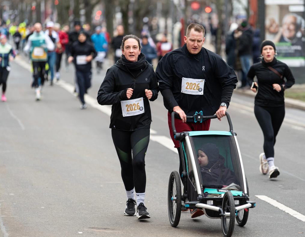 2026年1月1日,人们在德国首都柏林的菩提树下大街参加新年跑活动。新华社记者张豪夫摄