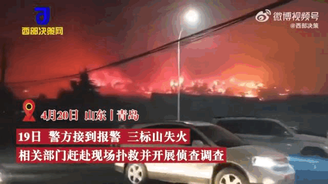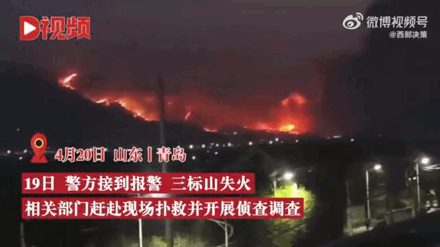 山东青岛市三标山发生山火