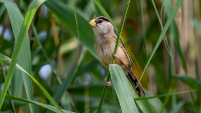 今年6月,我和同事一同前往盐城九龙口湿地采访,当我们乘坐小艇穿梭在芦苇荡里的湿地水道间时,一抹棕黄突然闪现在我的长焦镜头里:一个美丽的精灵,它小巧的身影正用弯钩似的喙啄食芦苇秆里的虫子,蓬松的羽冠随着动作轻轻颤动——震旦鸦雀!我和同事快速调整光圈快门,瞬息之间,它已消失在芦苇深处,只留下一个匆匆的影像。