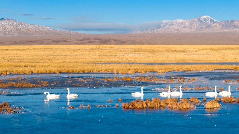 新疆塔克拉玛干沙漠周边湿地群鸟翔集