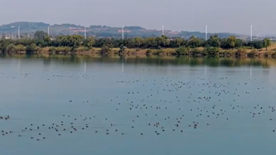 初冬时节,在安徽明光女山湖省级自然保护区,成群的候鸟时而在水中嬉戏、觅食,时而翩翩飞舞,构成一幅美丽和谐的生态画卷。