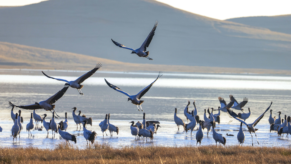 “洁白的仙鹤,请把双翅借给我,不飞遥远的地方,到理塘转一转就会回。”这首在西藏家喻户晓的民歌中提到的“仙鹤”,就是黑颈鹤。