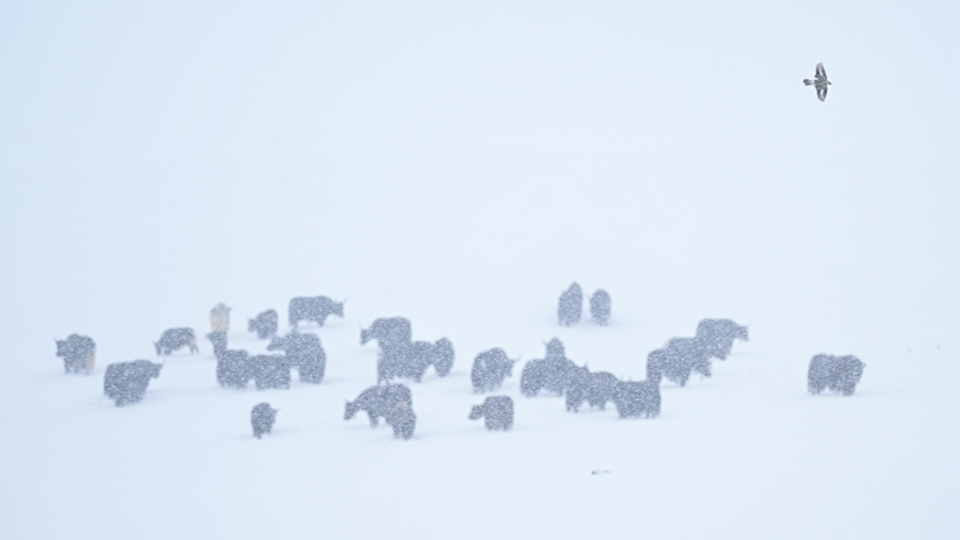 仲春时节,万物生发,北方大地多已一片新绿。而地处黄河源头的扎陵湖、鄂陵湖却被风雪包裹,一时难辨天、地与湖面。就在三天前,湛蓝的湖水如同宝石般光洁,河滩上枯黄的草甸下偶尔可以看见绿芽,鸬鹚衔水,牦牛觅草。