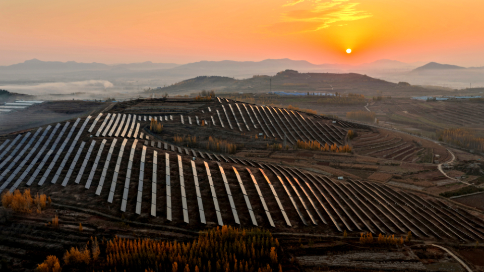 冬日时节,位于黄河“几字弯”的内蒙古自治区巴彦淖尔市磴口县寒意渐浓。记者从县城出发,沿着穿沙公路行驶在乌兰布和沙漠的茫茫沙海之中。不一会儿,就能看到车窗外连绵起伏的沙地上,整齐地排列着蓝色的光伏板,远看好似沙海之中一片无边无际的“蓝海”。