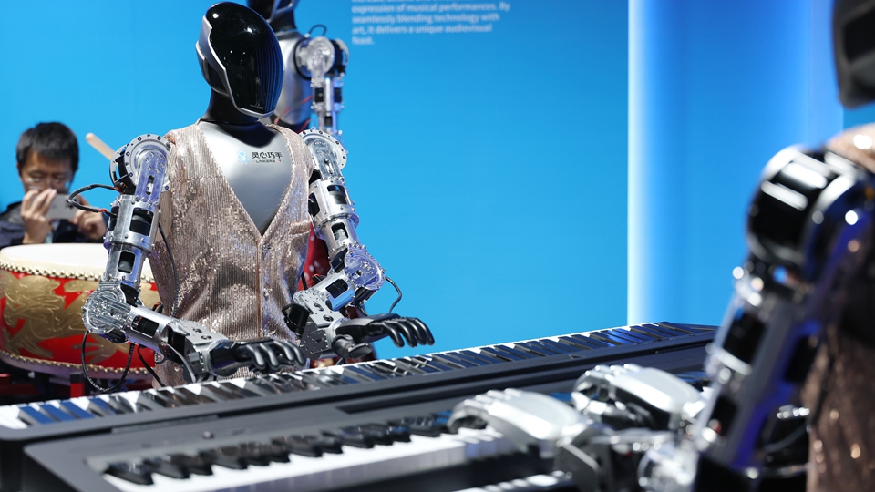 人形机器人在演奏音乐